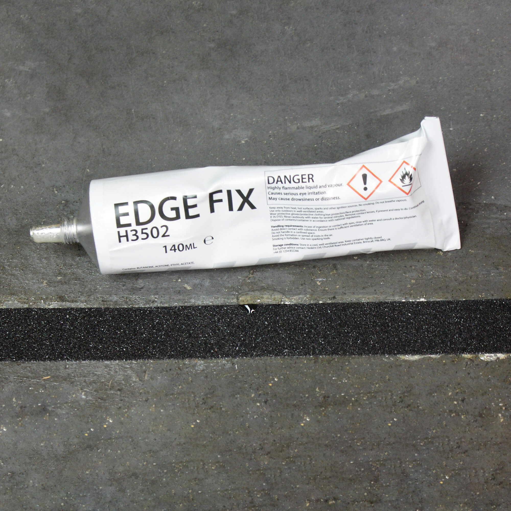 Для противоскользящих накладок на ступени требуется лишь небольшое количество — ровно столько, чтобы обеспечить контакт как с лентой, так и с основанием. Edge Fix следует наносить только после установки, а не до нее.