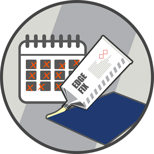 Edge Fix наносится как на основание, так и на ленту. В процессе отверждения он сжимается, эффективно подтягивая материал на место и надежно фиксируя его.